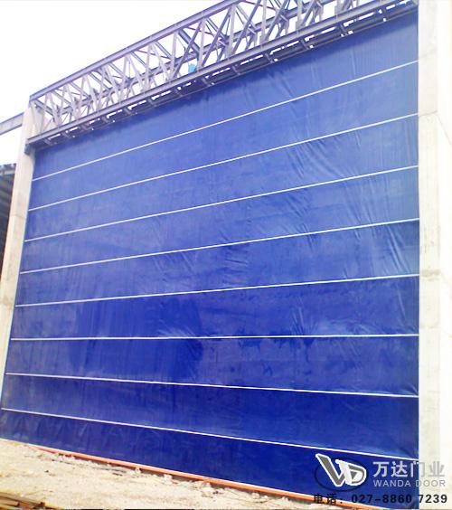 柔性大门是垂直折叠提升的镇安电动门,尺寸可依据具体门洞制作,可以拥有独立自我支撑结构,其门板材质为双层聚纤维基布,内嵌突出的钢制圆管抗风条承载基布与强大的风压。